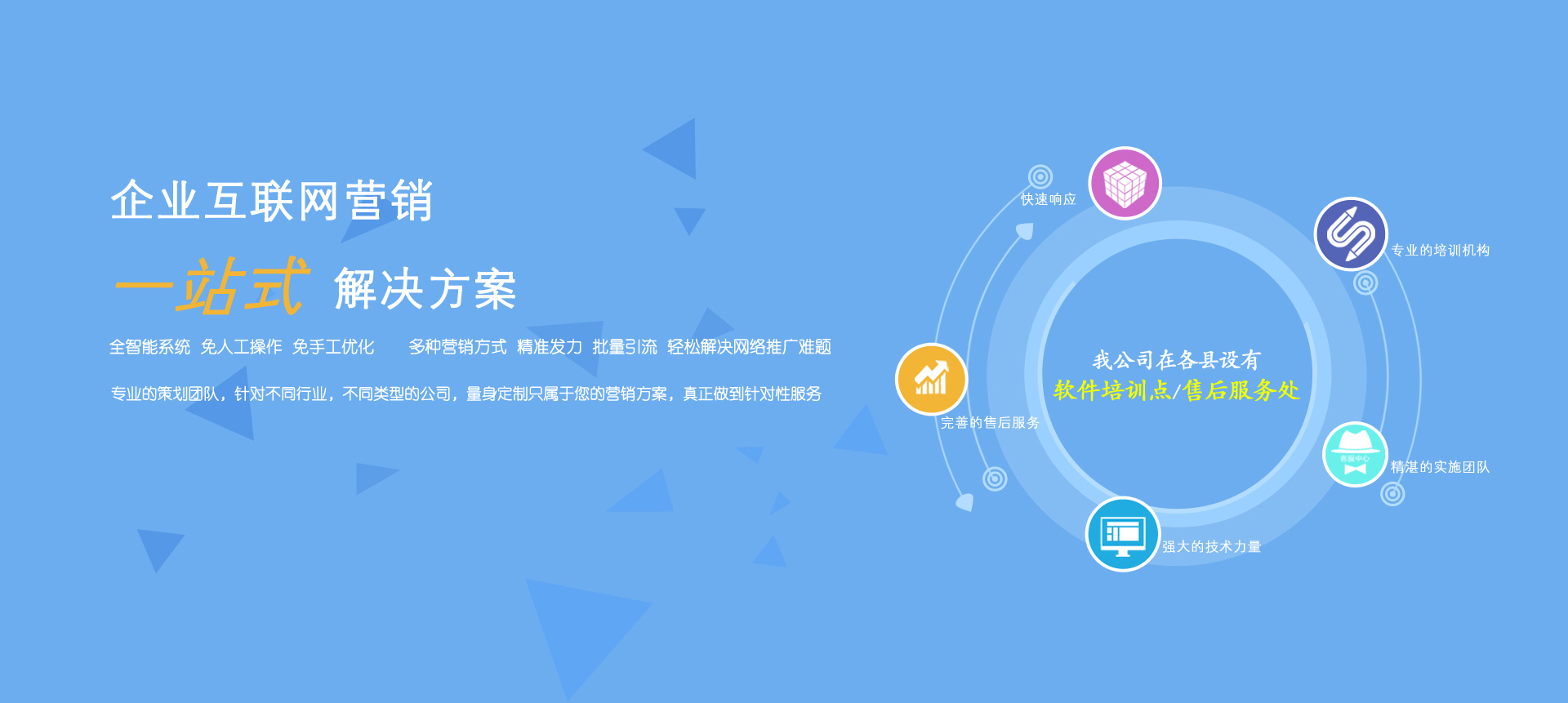 我公司在各縣設(shè)有軟件培訓(xùn)點(diǎn)和售后服務(wù)處。本公司有專業(yè)的培訓(xùn)機(jī)構(gòu)、精湛的實(shí)施團(tuán)隊(duì)、強(qiáng)大的技術(shù)力量、完善的售后服務(wù)。承諾:“快速響應(yīng),隨叫隨到”。絕不會因我們的原因影響會計(jì)人員的結(jié)賬、報(bào)表等工作。